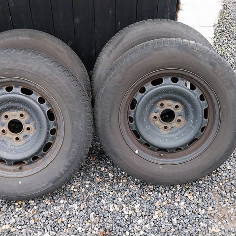 Komplettet stålfælg m/vinterdæk som skal skiftes. 4 stk. Med bolte & Kapseler. Prisen er afhentet i Kokkedal. Er taget af en Mazda3 fra 2008-2014.