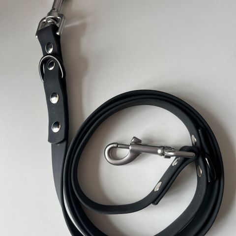 Nomad Tales Blush sele / hundesnor i farven sort / ebony. Selen er størrelse XS med brystvidde på 34-49 cm. Linen er 2meter og 2 cm bred. Brugt 2 gange, så fremstår helt nyt