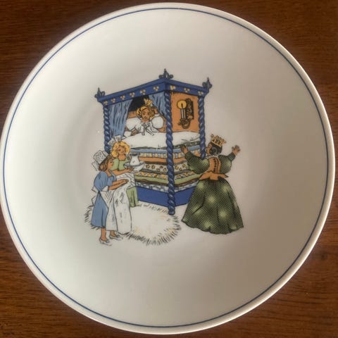 Vintage børnetallerkener med Kejserens nye Klæder