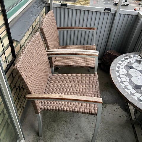 2 stk. Balcony Living Cph, Karla Teak klapstol med armlæn, metalstel.