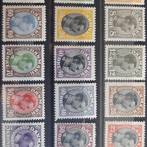 Perfekt postfriske Frederik VIII mærker fra 1907. AFA vurdering ialt 3.610 kr.