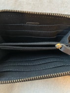 6 kort lommer plus 2 rum (kan også bruges til kort) samt lynlås rum i midten (9 rum i alt)