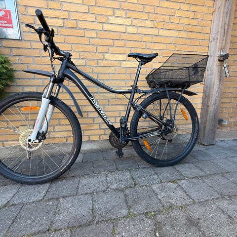 Sort mountainbike med 7 indv. gear - model MEK Cheyenne, 21 tommer, med lås, sadelpind og bagagebærer, som kan afmonteres hvis det ønskes.