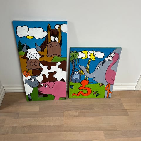 Rigtig fine malerier af dyr - Til børneværelset eller andet. Stk pris 350,-