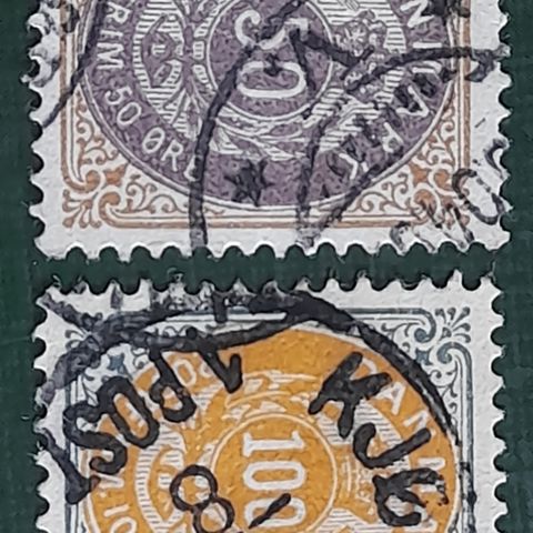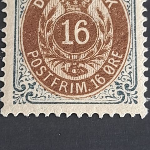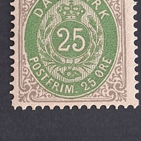 Perfekt postfrisk tofarvet øremærke fra 1875 m. omvendt ramme. AFA vurdering 2.000 kr.