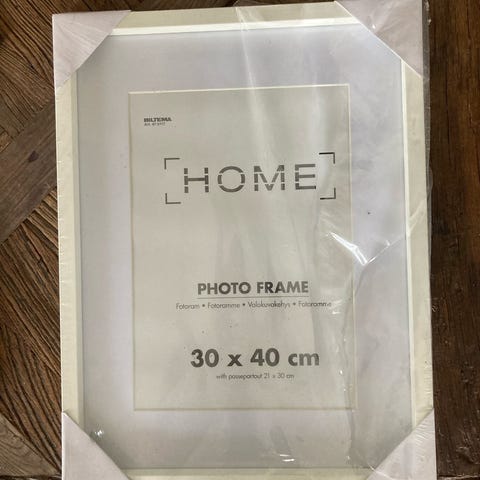 Billig træramme 10 kr. 16,5 x 21 cm. Kan hentes på Haraldsgade Østerbro