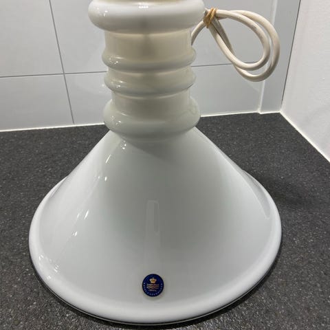 Apotekerlampe fra Holmegaard Glasværk, designet af Sidse Werner. Hvidt opalglas. Lille model. Ø 24 cm, højde 23,5 cm.