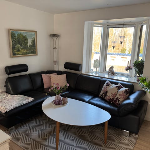 En sofa fra Hjort Knudsen, blød og lækker sortlæder over alt.