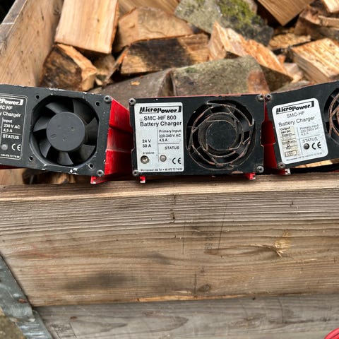 Sælger en kraftig 24V 25A lithium batterioplader fra S.P.E. Elettronica Industriale – model CBHD3 WCA, egnet til LiFePO4-batterier i el-køretøjer, robotter, AGV’er, golfvogne, trucks m.m.