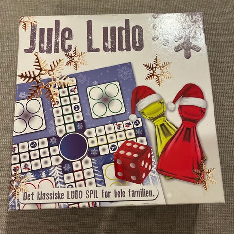 Turbo Juleludo, Ludo, brætspil, Julespil for hele familien. Ludo med ekstra sjov i form af turbokort, hvor man kan være heldig at kommer hurtigere frem - eller at skulle gå tilbage.