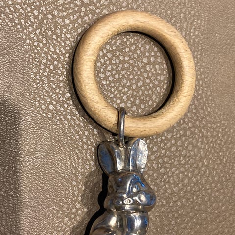 Rangle, Sølvrangle, Gammel sølvrangle, signeret NS, med indgraveret Birgit, 150 kr. Kan medbringes København Århus og Odense eller sendes #sølvrangle #babyrangle