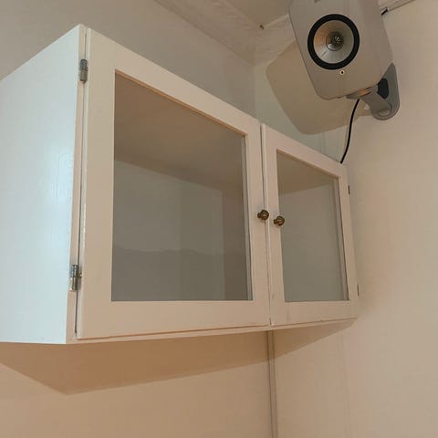En smuk vintage minivitrine med spejle og glashylder fra England. Swarovski krystal på glaslågen. Skal hænges op med to skruer. Grønt velur-betræk på bagsiden og i bunden. Vitrinen er af høj kvalitet i alle detaljer, virkelig flot og velholdt.
