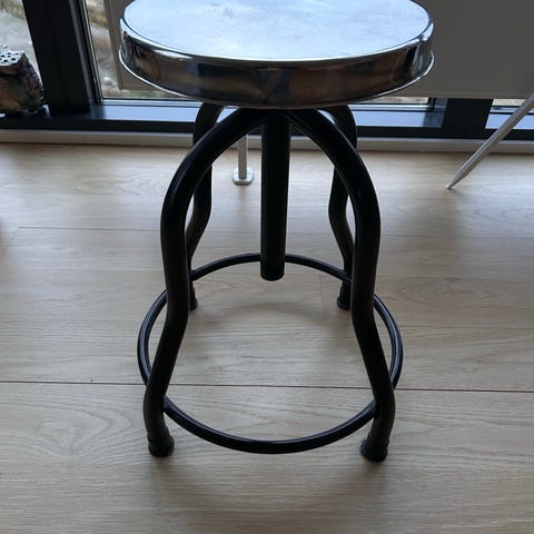 Ældre let design stol, muligvis prototype. Fremstår med rust. God til altan eller terrasse.
