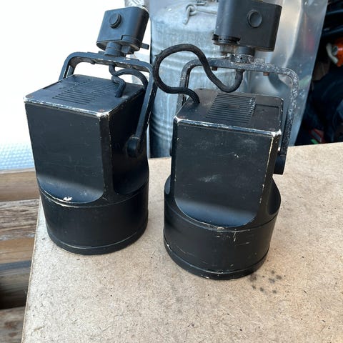Spot, Louis Poulsen - Storebror indbygningsspot., Her en orange Louis Poulsen "Storebror" spot med krave så den kan bruges som indbygningsspot.