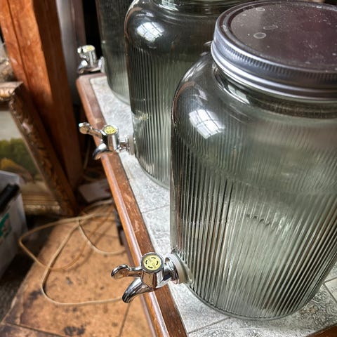 Coca-Cola glas dispenser med hane og træstativ. Denne dispenser er fremstillet af klart glas og har en praktisk hane til nem servering af drikkevarer. Den er monteret på et solidt træstativ, der giver stabilitet. Perfekt til servering af kolde drikke ved sammenkomster og fester.
