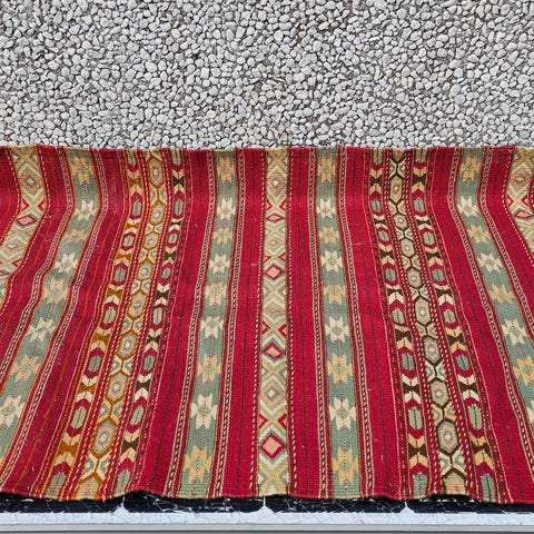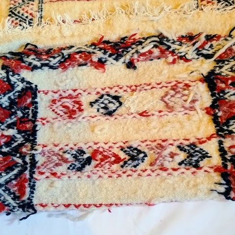 Uldtæppe i tunesisk hækling. 100 % uld. Er brugt, men er i rigtig flot stand. Kan vaskes på uldvask 30 grader.