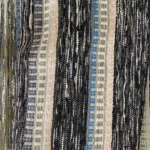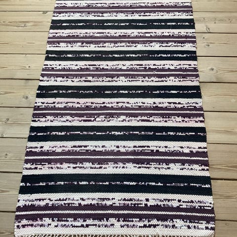 To ens vævede svenske kludetæpper eller sengeforliggere. Hvid bundfarve og ellers skær af alverdens farver. Pæn stand.