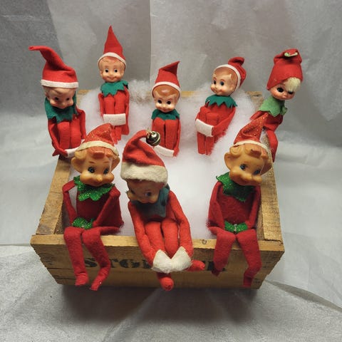 Vintage jul, Vintage Nisser i træ kasse og julebuk