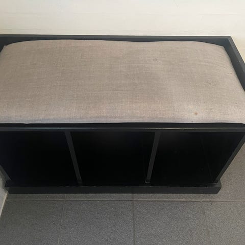 Cinas bænk model "Rib", fremstillet af matsort maghoni. En stilren og yderst elegant bænk som kan bruges til flere formål i hjemmet. Cinas er et dansk møbelmærke, grundlagt i 1903 under navnet Carl J. Nielsen. Cinas står i dag for udvikling og design. Butikspris 2.500 - 3.400 kr.