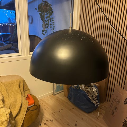 Lyskilden er placeret inden i skallen af metal, mens en kuglerunde skærm af træ, er placeret indeni ved hjælp af magnetisme. På den måde kan trækuglen drejes og du har derved mulighed for at justere lyset i den retning du har behov for.