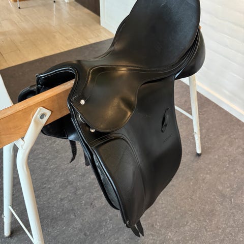 Jeg sælger min sorte Passier Blu 17" dressursadle. Den er købt for ca. 4,5 år siden, men er brugt samlet 3 uger, da hesten blev skadet og desværre ikke kom/kommer i gang igen.