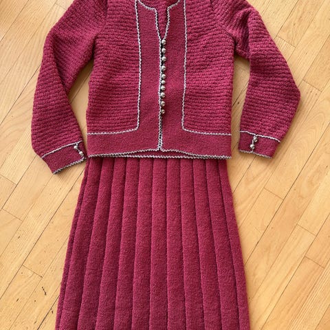 Andet, Isabelle, str. 38, Sort, Uld, God men brugt, Vintagestrik med guldknapper og pels foran.