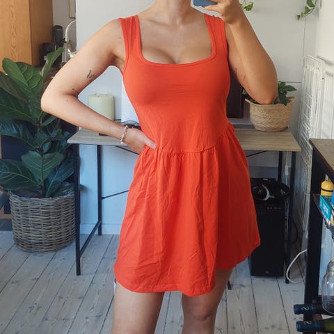 Orange sommerkjole fra Asos med brede spaghetti stropper