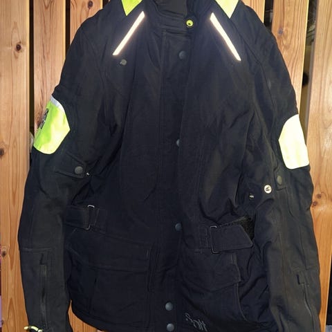 Mc jakke fra rebelhorn til salg. Størrelse 46 i en meget lille størrelse. Smal pasform. Er kun brugt 3-4 gange og fremstår stadig som nyt. Materiale er læder og stretch stof. Den er perforeret foran. Indvendig er der aftalelig for