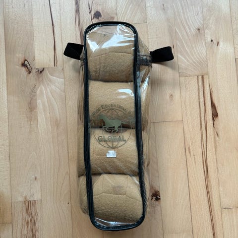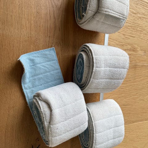 Flaskegrønne fleece bandager. Kun brugt få gange.