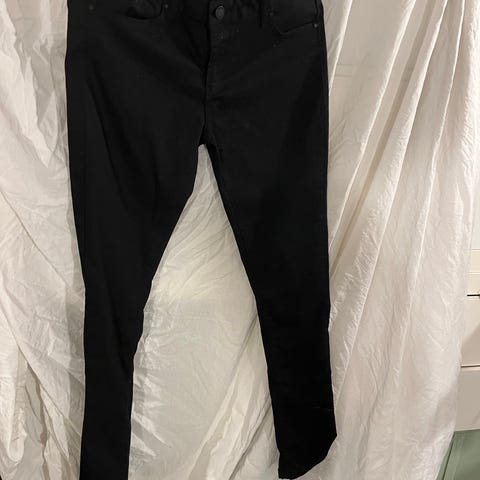 Forvaskede jeans med lige ben og elastik og bindesnor i talje (ingen lynlås og knap), løstsiddende med for- og baglommer lommer