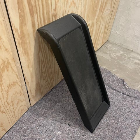 Betrukket med filt, så hunden ikke glider. Hver dag måler 76,5. I alt 153 cm lang og 40 cm i bredden.