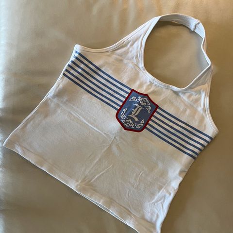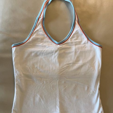 Soltop med V-udskæring, bindebånd og bar ryg i sart lyserød. 92% bomuld 8% spandex.