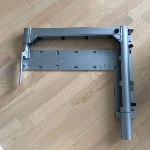 Møbelpladen kan sættes i forskellige positioner bla vinkelret, der er kabelbakke bagerst i bordpladen. Der følger 2 stk skabe med, den i midten kan evt tilkøbes. Budet starter på 9500 kr og budforøgelse er 100 kr. Hvis tilfredsstillende bud ikke opnås så forbeholder jeg mig retten til ikke at sælge !!!