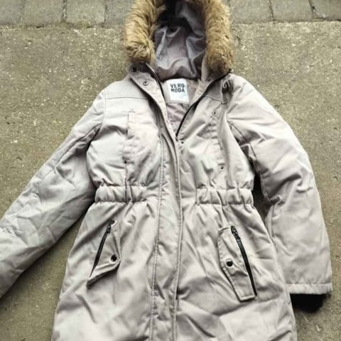 Den er pænt, ren og ingen fejl. Med lynlås og lommeposer. Alt virker fint. Den har haft et navn skrevet på, derfor prisen er meget lavt.