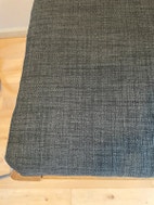 Måske 75-100 år gammel. HELT nybetrukket med nyt skum, pladevat og flot mørkegråt betræk. Meget let at ombetrække igen. Jeg gjorde det selv, hvilket også kan ses på bagsiden af sædet.