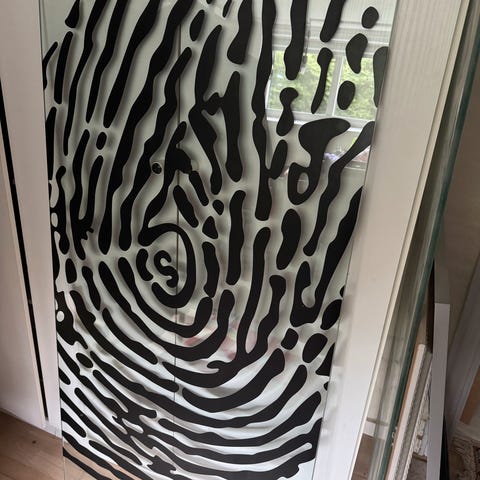 Super fed glasbordplade med kanter af aluminium sælges. Pladen er lavet i frosted look, og der kan monteres ben på pladen med 10 mm bolte.