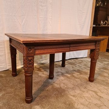 Spisebord fra 1930'erne med løvefødder i massiv eg