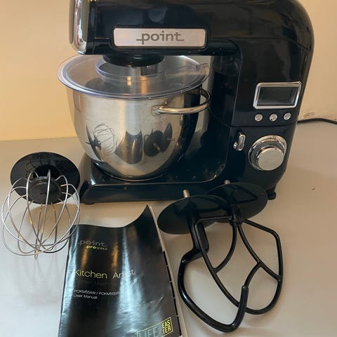 Til salg, da vi har flere køkkenmaskiner, med overlappende funktioner. Maskinen er brugt kortvarigt. Undtagen et lille afslag på stænklåget er maskinen helt intakt.