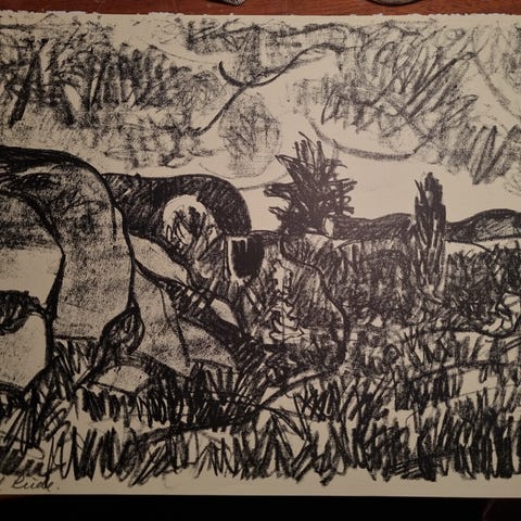 Olaf Rude. Begyndende Forår, 1929. Litograferet af Kauffeldt og trykt hos I.Chr. Sørensen 1943. Monteret på karton. Oplaget var 500.
