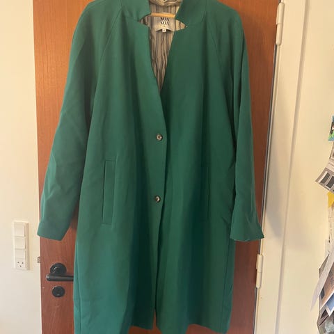 Designet er en oversize silhuet. Frakken revers med indhak, lange ærmer, skjult knaplukning foran Sidelommer med slids.