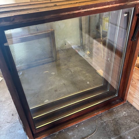 3 mahogni-vinduer (sidehængslede) i fin stand