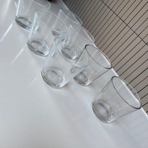 Stort tyrkis glas med hank højde 11 cm. Designet af Kaj Franck