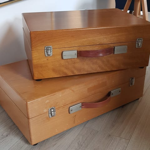 Trækasse, kuffert , værktøjskasse, plyfa Super lækker træ kuffert til alt fra foto udstyr eller værktøj eller fiskeri eller andet. Ekstrem god til outdoor aktiviteter, også god til overlevelses kasse , da den er god og effektiv til hurtig at kunne pakke. Målene er 550 x 362 x 300mm