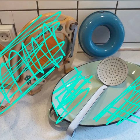 Køkkentøj kurve flasker mm