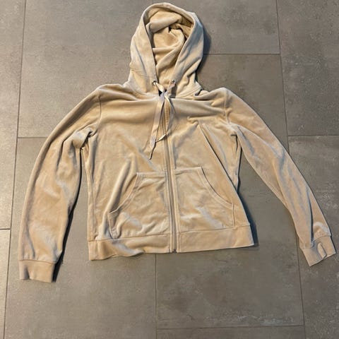 Beige/ hvid trøje med lynlås og to lommer fra Gina Tricot str. XL