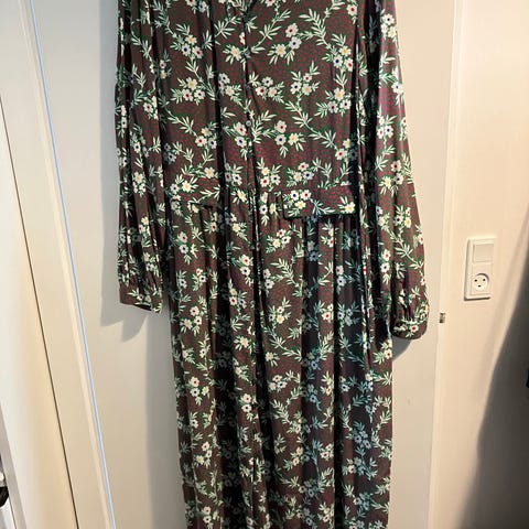 Der står ikke str. i men passer str. m og er rummelig. Måler 52 cm fra ærmegab til ærmegab og 113 cm i længden.
