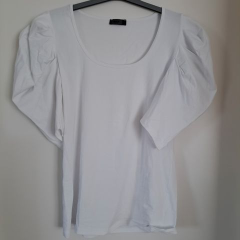 Hvid bluse med sorte striber og pufærmer str. XL