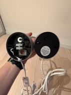 Den ene knap er gået tabt, så derfor er der sat en afbryder på ledningen.