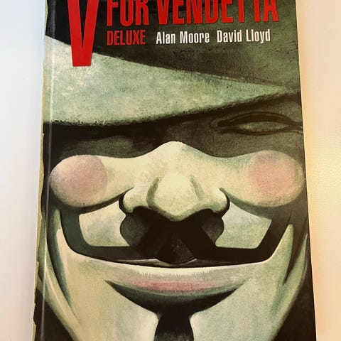 V for Vendetta - the captivating graphic novel by Alan Moore. Gritty and dark, but oh so nice.