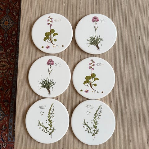 ældre indretning samlinger samlerobjekter vægpynt vægophæng 6 stk porcelæn platter tallerkner,måler 26cm.